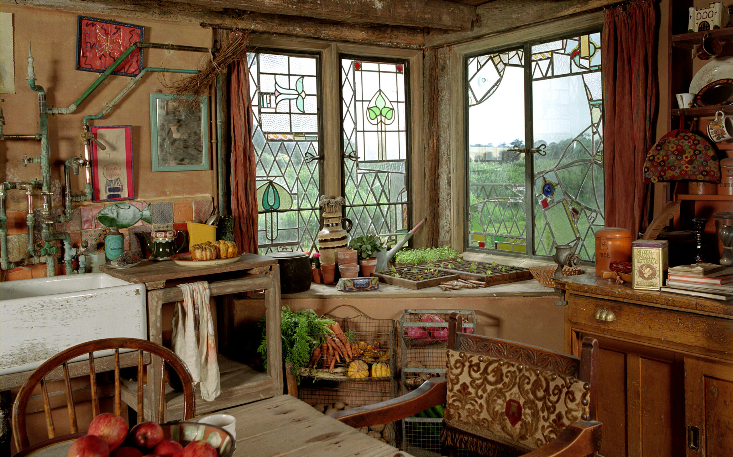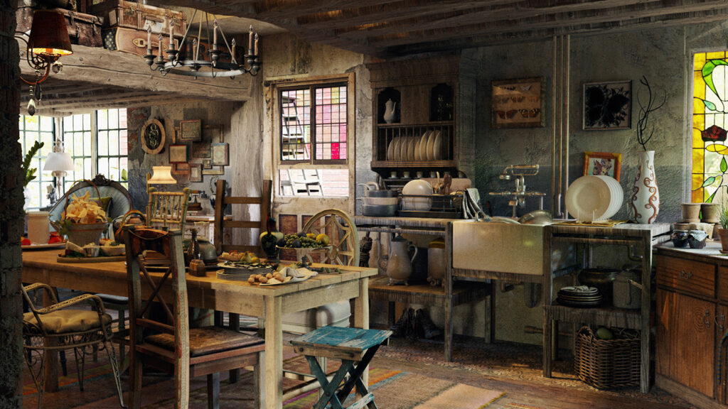 Une maison de campagne atypique et terriblement attachante : ici, les volumes se superposent comme si la maison avait suivi la vie de famille année après année. La cuisine est le centre de gravité : grande table, chaleur du poêle, vaisselle qui s’accumule joyeusement et cette impression qu’un thé peut toujours apparaître “comme par magie” quand quelqu’un passe la porte.